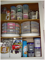 You make my pantry tackle look pitiful!!! I actually sold tupperware for a blink, but was never able to afford all that stuff! Someday I am going to get it! It looks so wonderful! Good Job!