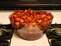 I started out with 2 buckets of strawberries and ended up with this nice, large bowl of strawberries. Some have been frozen for use later. Some have been eaten. Some were turned into 2 yummy strawberry pies!