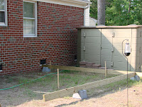 Yesterday, D spent a bit of time taking out the first layer of brick steps from the back of the house in preparation of putting down the deck. It was a painstaking process even with the proper tools, but he did a great job. He then moved on to laying out the design for the deck.