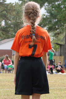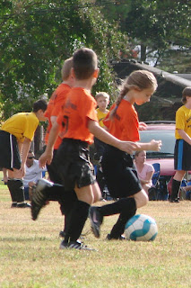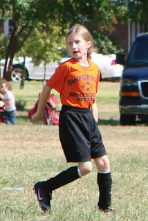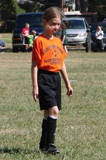 This year, Munchkin is playing on a Christian homeschool soccer league. She’s having a blast learning the game and just getting out there and playing. She has practices on Friday and games on Saturdays. The good news is that Daddy will actually be able to see a game or two before he deploys!! Her season lasts from September to November. So, we start out toasty and end up freezing (or so I’ve been told). Here are a few pictures.