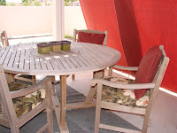 Ah, much more comfy and inviting. Now, if it will just cool down a little, we may be able to enjoy the outdoor space a bit more. Our parsley and cilantro are slowly growing, but the oregano apparently doesn’t like the heat. (I found these planter sets on clearance at the fabric store.)