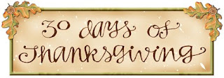 Karla decided that it would be fun to have 30 days of Thanksgiving. I thought this was a great idea and decided to join in on the giving of thanks.